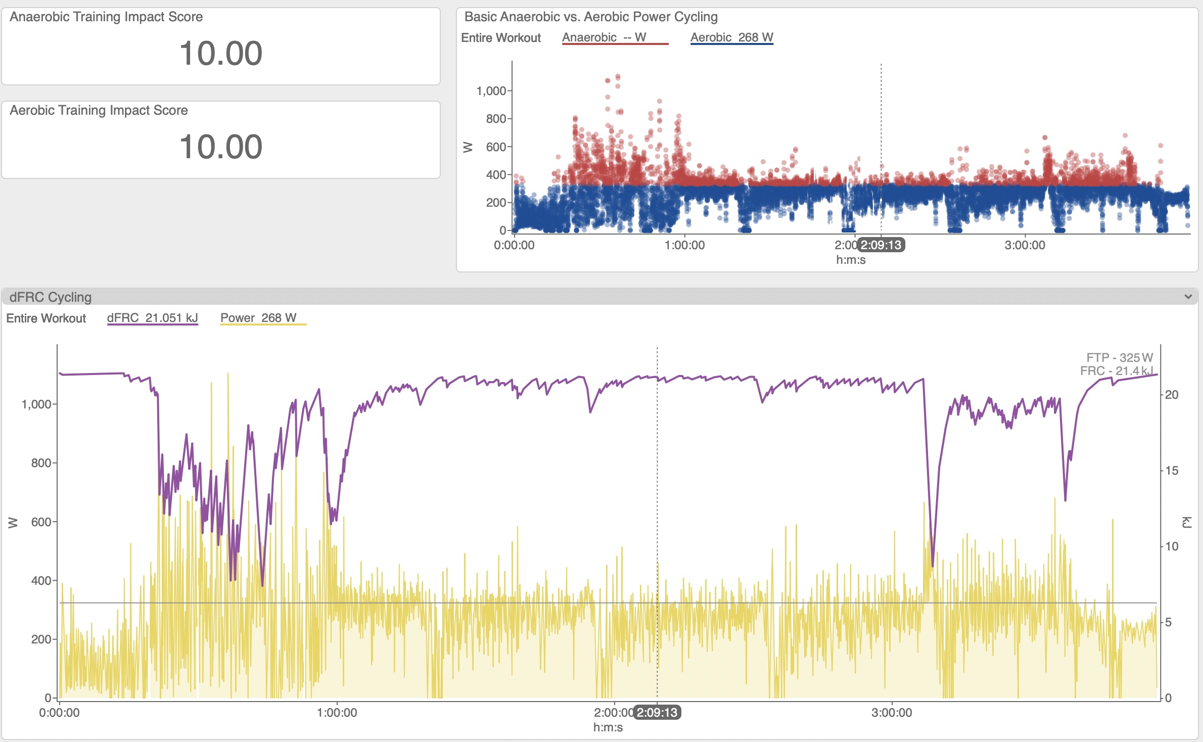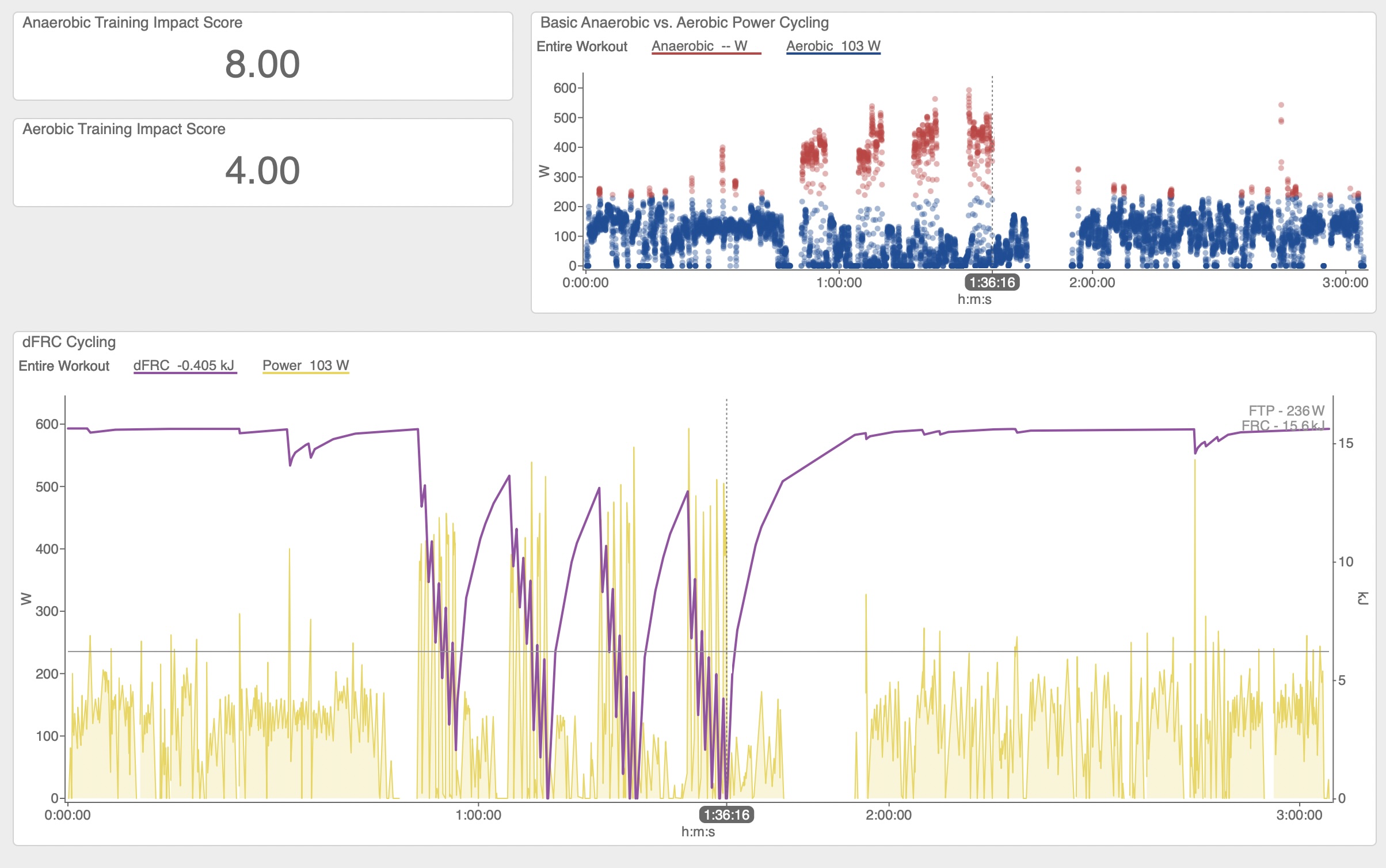 Functional Reserve Capacity (FRC) is essentially your “anaerobic battery”. By definition, FRC is the amount of continuous work you can do above FTP before you fatigue. Practically, that means: